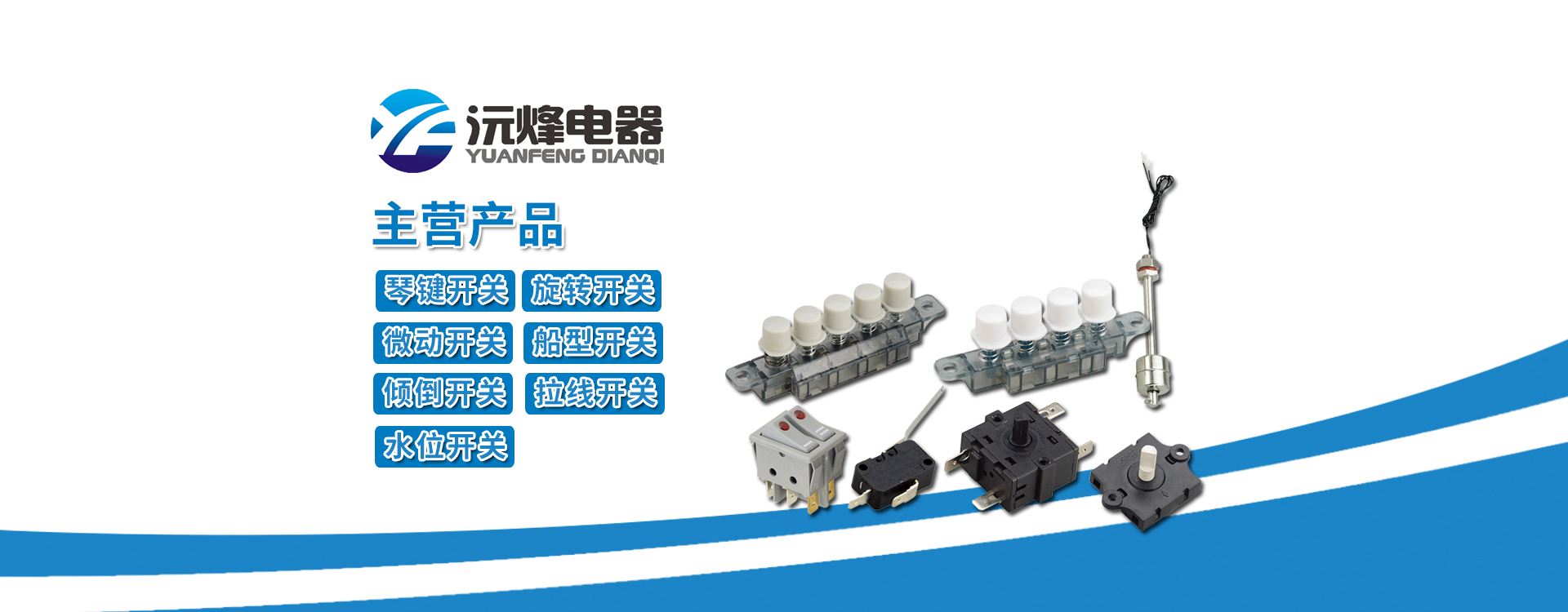 主要生產(chǎn)浮球開(kāi)關(guān)、接近開(kāi)關(guān)、琴鍵開(kāi)關(guān)、旋轉(zhuǎn)開(kāi)關(guān)、微動(dòng)開(kāi)關(guān)、船型開(kāi)關(guān)、拉線開(kāi)關(guān)以及接線座等系列產(chǎn)品。